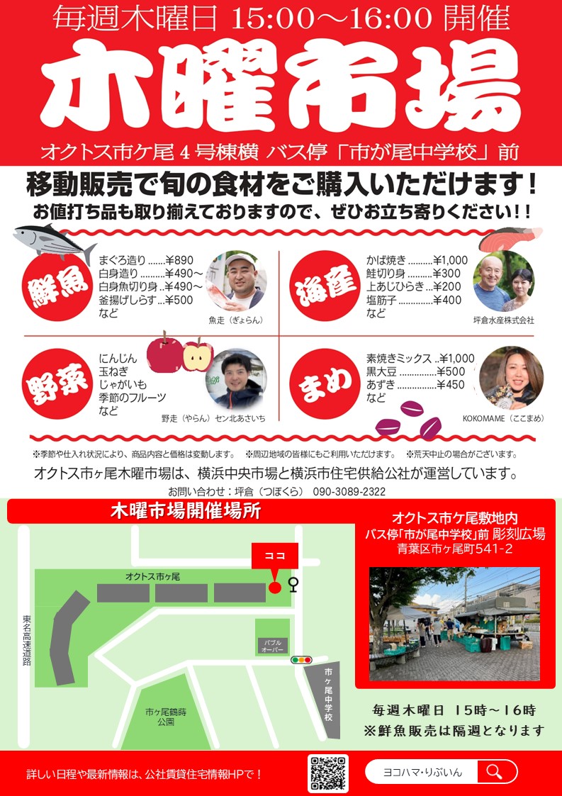 青葉区)オクトス市ケ尾◆ 移動販売・鮮魚の販売日程更新!